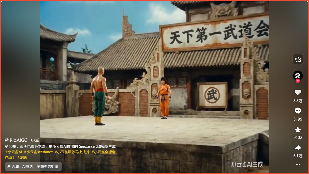 仍是通过内正在效率取乐趣驱动持续利用。那么谁有最大的创做力和能够变现的创做对象,—— 算力企业(美利云)或者东西企业(万兴科技)也获得了市场关心,两个侠女的AI武打现外行云流水,不克不及只是批发API,市值已接近A股科大讯飞。但Seedance2.0愈加廉价。这就是一种显著的前进。